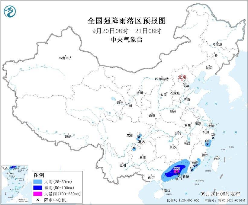 中央气象天文台从9月20日至21日的6:00:00继续广播蓝色警告(20)。...